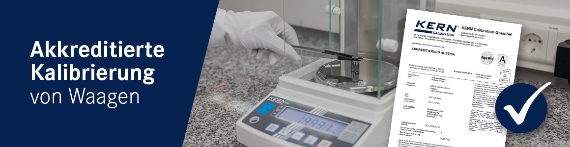 Die KERN Calibration GesmbH bietet Ihnen die akkreditierte Kalibrierung von Waagen auf höchstem Niveau – anerkannt und akkreditiert durch Akkreditierung Austria. Als Tochterunternehmen der traditionsreichen KERN & SOHN GmbH, deren Kalibrierlabor bereits seit über 30 Jahren akkreditiert ist, vereinen wir präzise Messtechnik mit gewachsener Kompetenz.