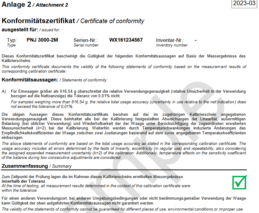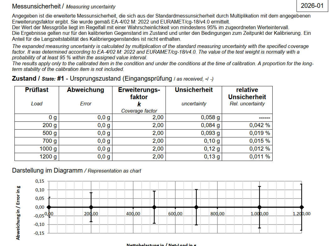 Benötigen Sie auch die Werte vor einer eventuellen Justage oder Reparatur, teilen Sie uns dies bitte in Ihrer Bestellung mit.